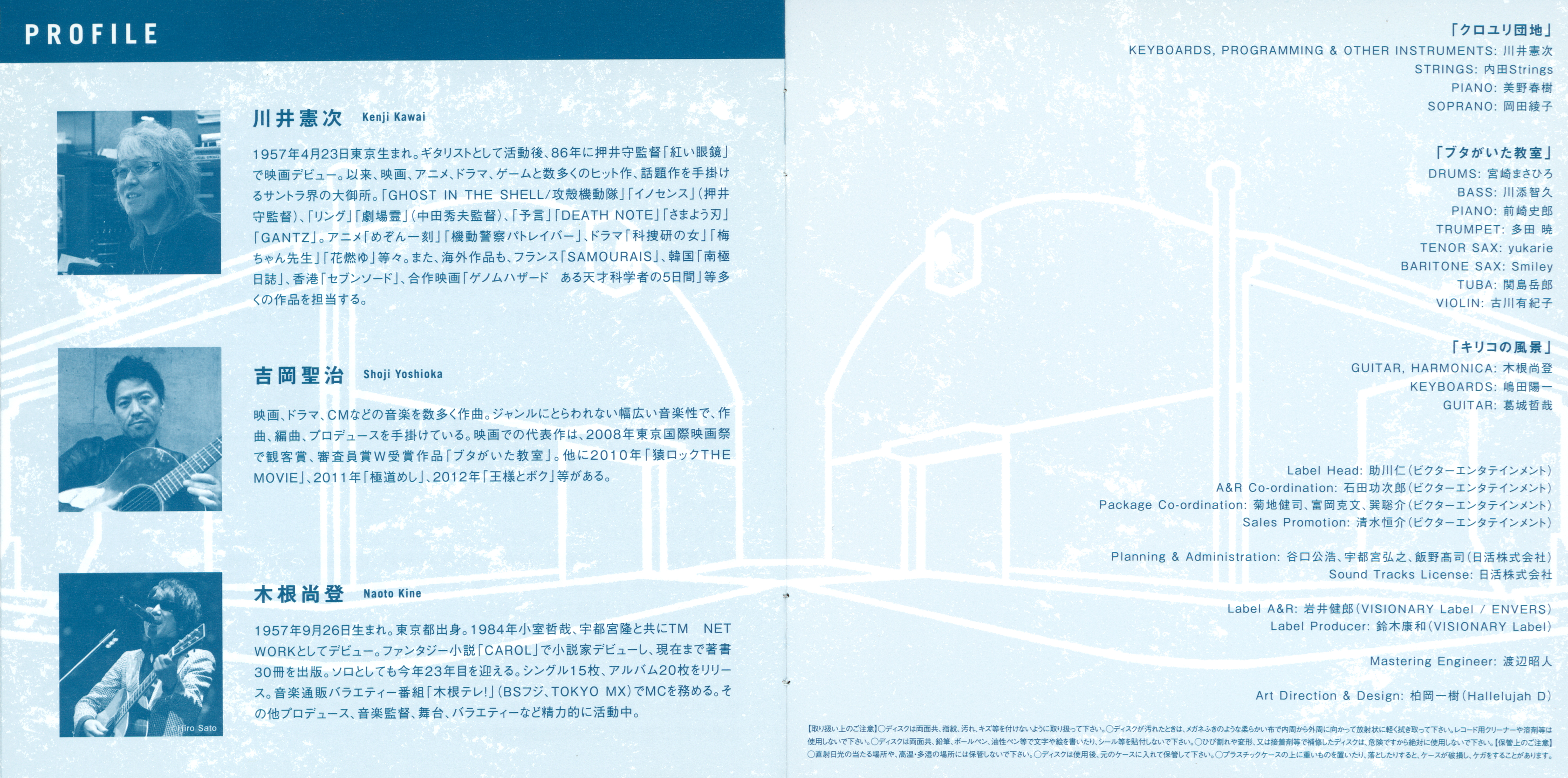 | Extra Info | Features instrumental tracks taken from films "Kiriko no Fukei" (1998 - Naoto Kine), "School Days with a Pig" (2008 - Seiji Yoshioka), and "Kuroyuri Danchi" (2013 - Kenji Kawai). |