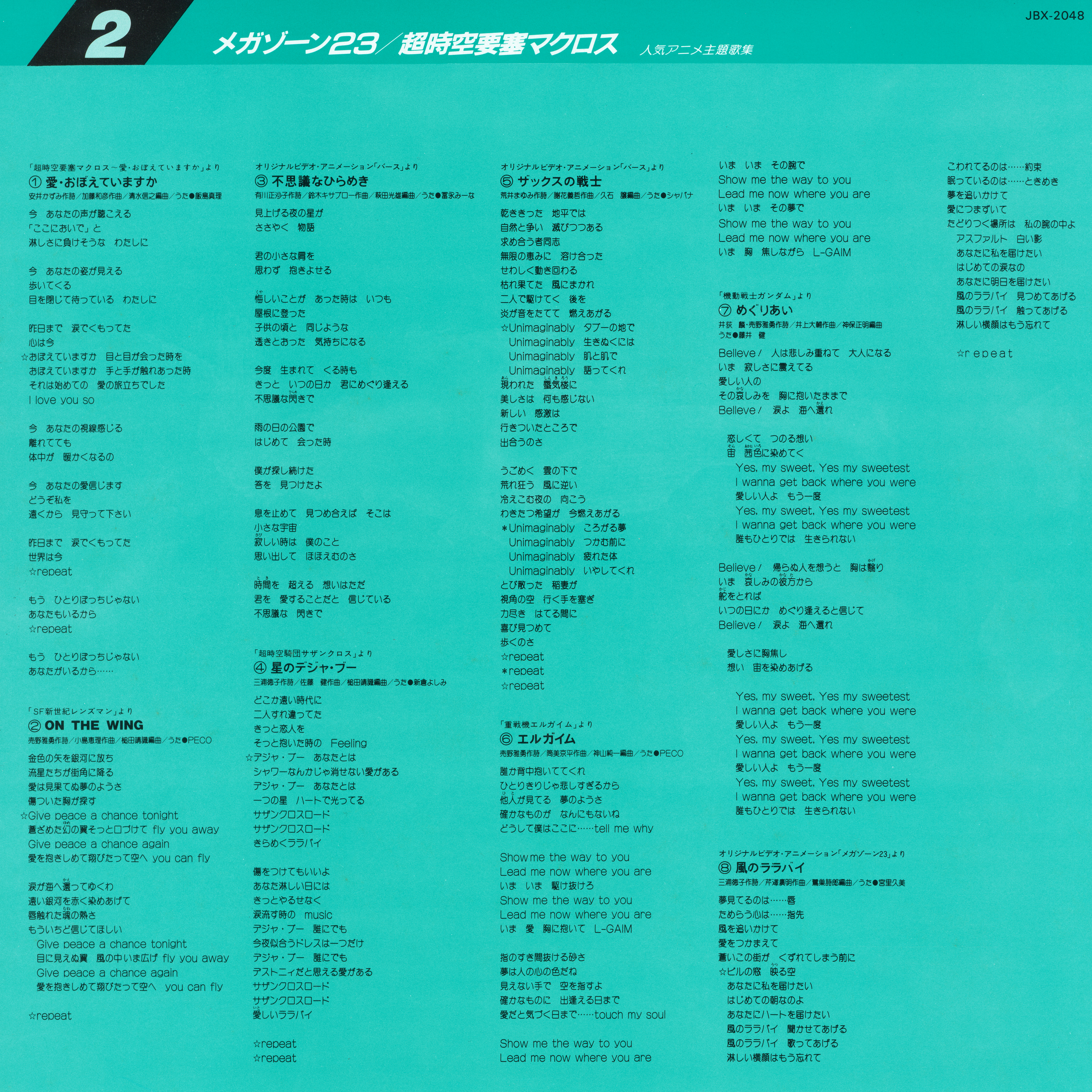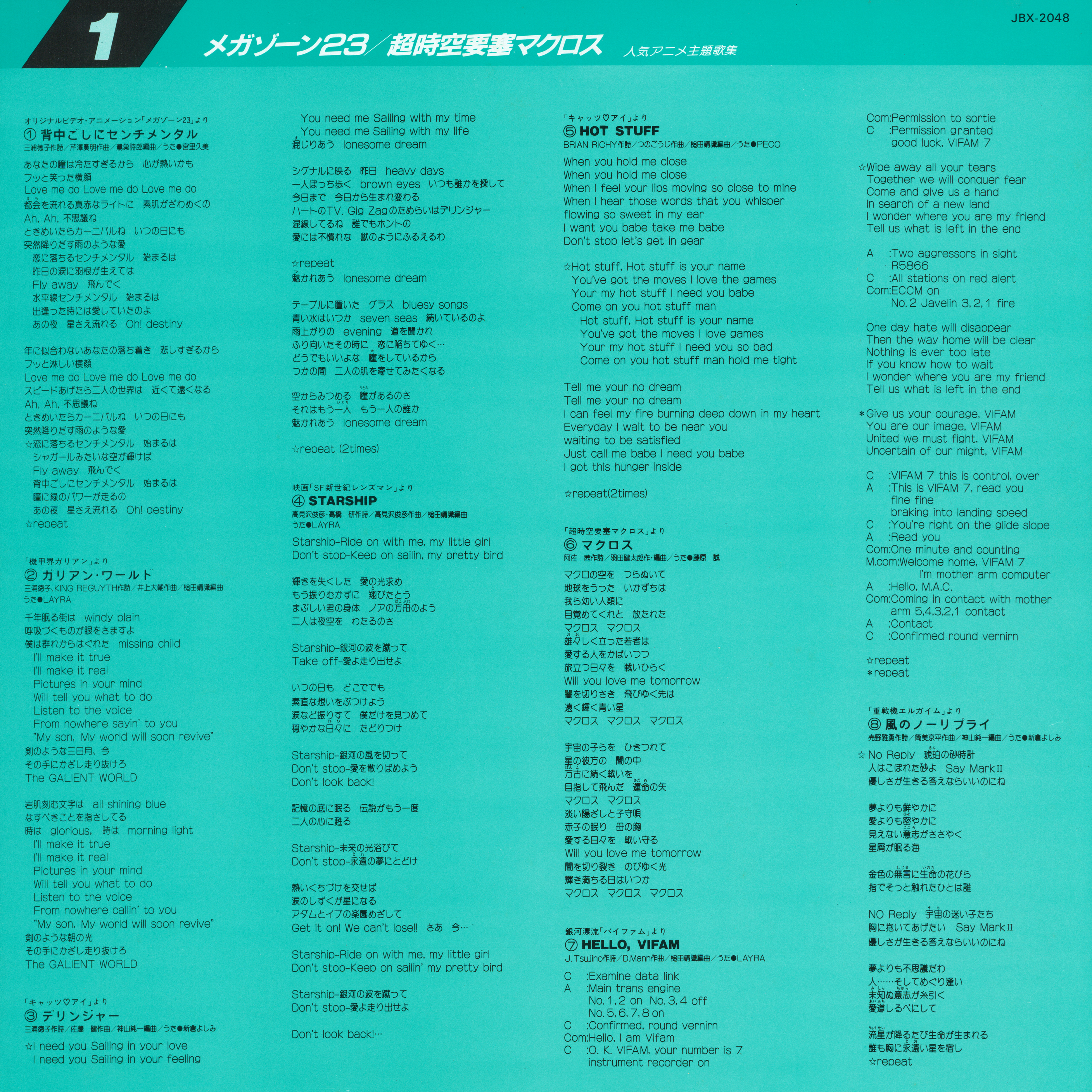 人気アニメ主題歌集 おー! かっこいい! メガゾーン23/超時空要塞マクロス